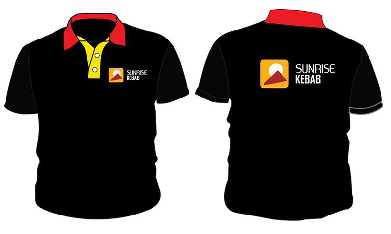 - Mẫu áo đồng phục nhân viên Kebab khiến bạn không thể nào quên đi được màu sắc đen - đỏ đặc trưng đã làm nên thương hiệu của công ty bấy lâu nay.