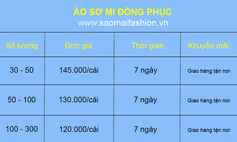 Công ty Sao Mai xin trân trọng gửi đến bạn bảng báo giá đồng phục: